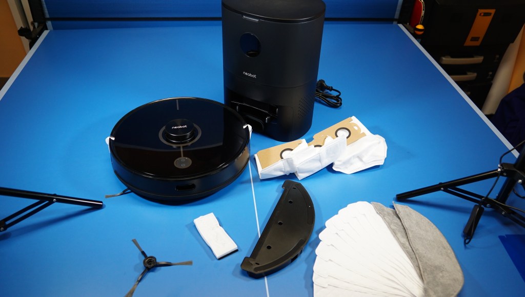 Alles ist sicher verpackt und kam bei mir unbeschädigt an. Der N2 hat auf der Oberseite ein Hochglanz-Finish welches wie ein Magnet auf Staub wirkt und bereits nach kurzer Zeit mit dem zuvor genannten bedeckt sein wird. Die Absaugstation ist im Vergleich zu der Station unseres Vorgängers das des Neato D6 deutlich größer. Was natürlich damit zusammenhängt, dass hier Dreck nach jeder Reinigung abgesaugt wird. Ich kann euch verraten wer einmal einen Staubsauger Roboter mit Absaugstation verwendet hat will nie wieder ohne. Eines der Wischtücher die im Lieferumfang enthaltenen sind, ist bereits auf dem Stecksatz montiert, diese ist von der Größe her ungefähr so groß wie ein kleines Tablet. Hier muss einem bewusst sein, möchte man eine 60, 70 oder gar 80m² große Wohnung reinigen wird man mit so einem kleinen Lappen kaum was ausrichten können. Die Wischfunktion würde ich eher in die Kategorie „Nice to Have“ einordnen als das es einen wirklichen Mehrwert hätte. Über die 10 Stk Einwegwischtücher habe ich mich gefreut und über die extra Seitenbürste auch. Die Seitenbürste kann nur umständlich mit einem Kreuz-Schraubenzieher gewechselt werden hier haben bereits andere Hersteller mit Magnet-Verschluss voraus gedacht. Der erste Eindruck fällt recht solide aus der Verarbeitung sowohl von Staubsauger selbst als auch von der Station kann sich sehen lassen und auf den ersten Blick sind mir keine gravierenden Mängel aufgefallen.