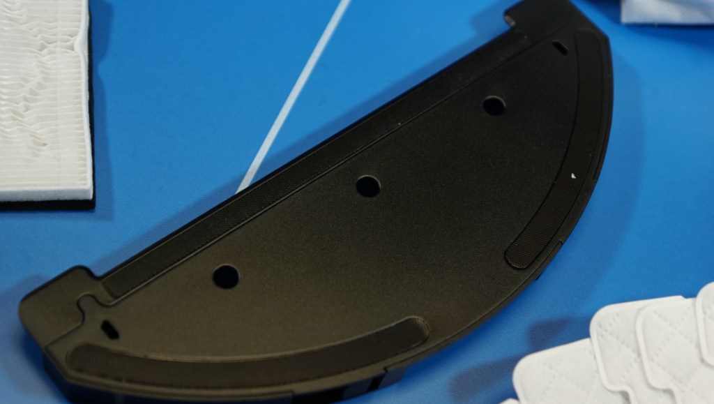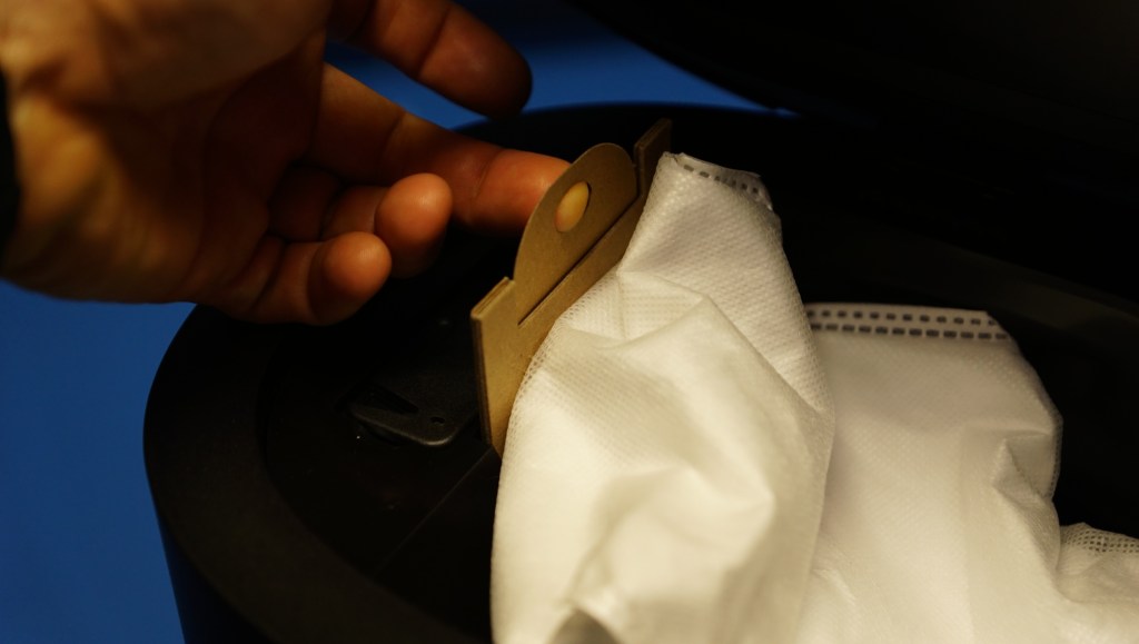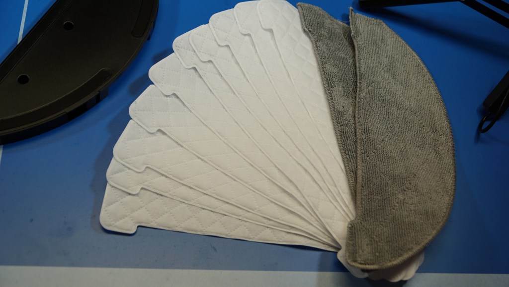 Mich nervt ein wenig der Umstand, dass in der Reinigungsstation Beutel verwendet werden. Die dann leicht zum Wechseln und Entsorgen sind, aber dann natürlich wieder dazu gekauft werden müssen. Wir haben es dann so geregelt, dass wir den Beutel nach einiger Zeit ausdrücken, um Ihn öfter zu verwenden. Sehr umständlich und der Staub fliegt überall herum aber wie gesagt man spart sich das Kaufen neuer. Hier hätte ein Wiederverwendbarer Behälter besser gepasst. Fährt der Staubsauger Roboter auf die Station sollte man unbedingt den Nass-Aufsatz inklusive Wischtuch entfernen. Da es hier sicher zu Beschädigungen am Holz-Boden kommen wird. Der Nassaufsatz ist nicht durchgehend mit Wasser in Kontakt, sondern wird durch eine kleine Pumpe mit Wasser versorgt, dies hat den Vorteil, dass keinen groben Wasserflecken entstehen. Im Lieferumfang sind sowohl Einwegtücher als auch das waschbare Tuch die mittels Klettverschlusses am Aufsatz halten, mitgeliefert. Die Einwegtücher sind praktisch und können nach dem nassen Reinigen entsorgt werden. Wenn man diese vorsichtig wäscht kann dieses auch 2-3 wiederverwendet werden. Wenn es schnell gehen muss, haben diese Einwegtücher sicher ihre Daseins Berechtigung aber auf lange Sicht ist mir das waschbare Tuch deutlich lieber, da nachhaltiger.
