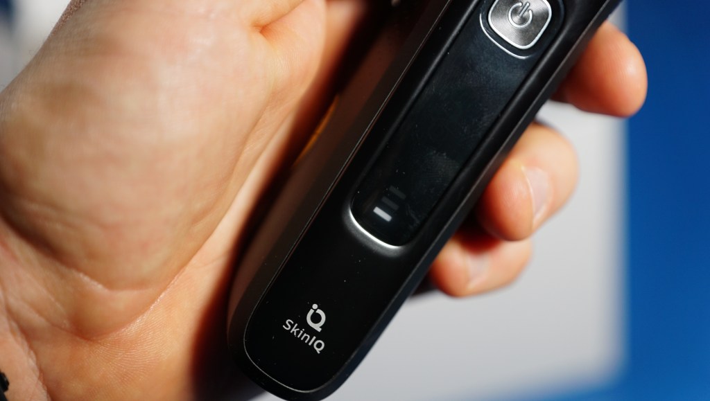 Die drei Scherrköpfe die jeweils einzeln aber auch als ganzer Kopf bewegbar sind passen sich der Kontur meines Gesichtes nicht perfekt an. Meist ist ein Kopf des Rasieres in der „Luft“. Nicht sehr tragisch, könnte aber besser sein. Den Popup-Trimmer benutze ich kaum da meine Haare eher kurz geschnitten sind und oft nahtlos in den Bart über gehen. Besonders gut gefallen hat mir das interaktive Disyplay welches, einen informiert wie gut ausgeprägt die Kreisbewegungen sind. Ein orangenes Symbol besagt, dass die Bewegungen besser sein könnten. Ein grünes Symbol hingegen informiert über gute Kreisbewegungen. Stellt man den Rasierer in den Standfuß und drückt den Ein/Ausschalten Knopf so beginnt er die Reinigung. Diese dauert einige Minuten und der Rasierer ist danach so gut wie neu, kaum Stoppel zu entdecken. Der Rasierer kann sowohl trocken als auch Nass verwendet werden. Dies macht es besonders unter der Dusche angenehm, da man hier sofort den Rasierer unter den Brausenstrahl halten kann und die Stoppel werden weggespült. Der Rasierer kann nicht verwendet werden, wenn er an den Strom gesteckt hat. Damit man nicht unter der Dusche einen elektrischen Schlag durch das Netzteil erhält.