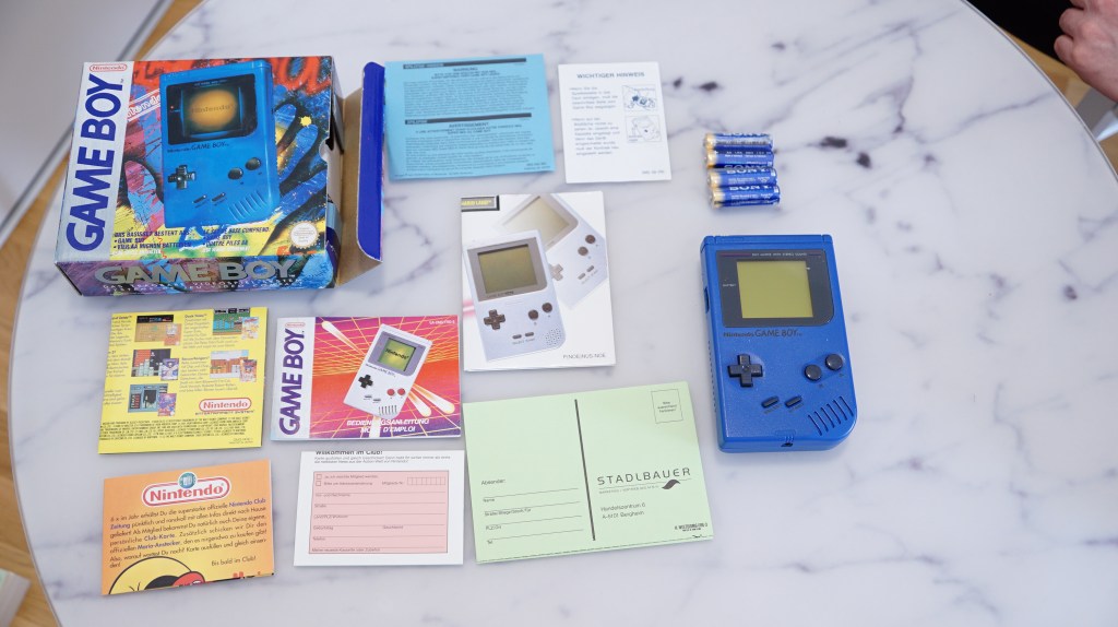 38 verkauft | Nintendo | GAME BOY DMG 1 Blau | Gameboy in pappkarton blau mit Sony Batterien teilweise ausgelaufen Beschreibungen komplett | Ja | NEIN | 8 | 8 | 300 |