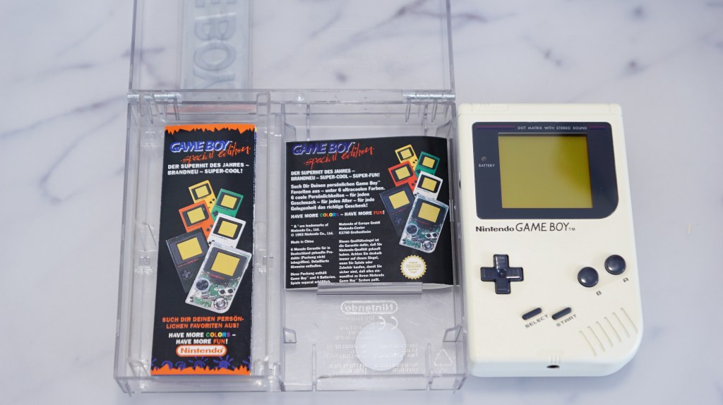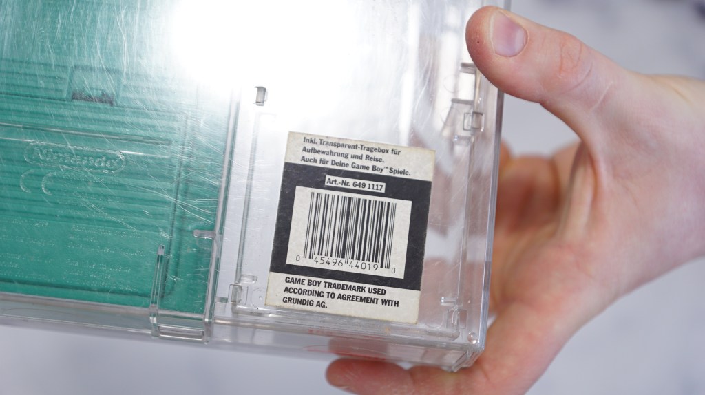 | 40 | Nintendo | GAME BOY DMG 1 weiß | Gameboy in crystal case Case hat zugehöriges Etikett, 2 Beschriebungen vorhanden, vorderseite des Gameboy teilweise vergilbt. | JA | NEIN | 6 | 7,5 | 250 |