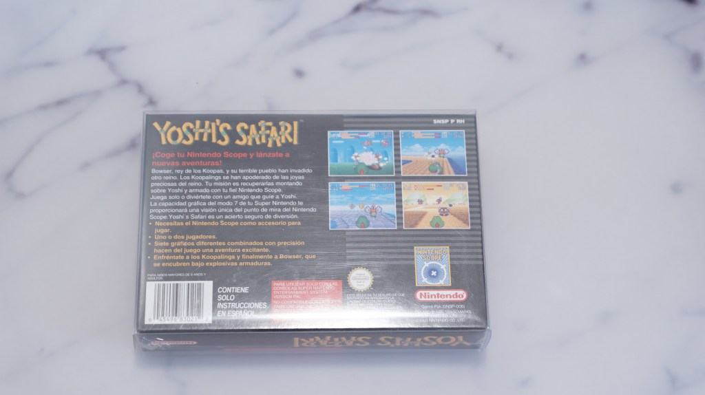 | 58 | Nintendo | SNES Yoshis Safari | Yoshis Safari für den super nintendo sealed und mit plastikhülle aus spanien mit aufkleber | JA | JA | 9,5 | 10 | 500 |