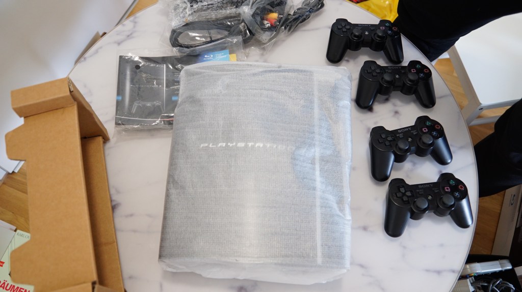 | 94 | SONY | SONY PS3 60GB | Sony PS3 60GB Version abwärtskompatibel, laufwerk getauscht, komplett mit 4 Controllern | JA | NEIN | 7 | 8 | 400 |
