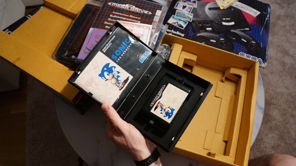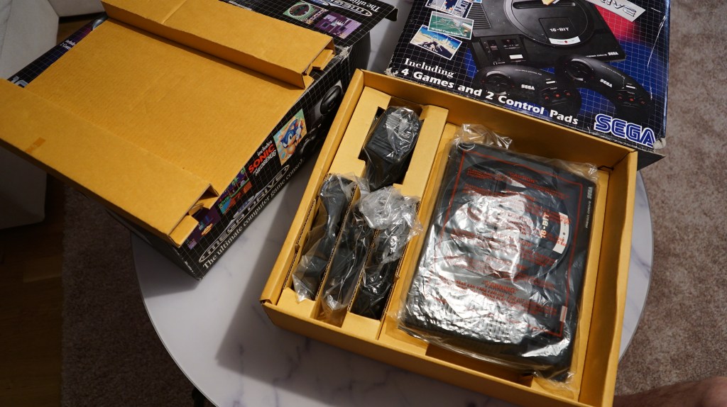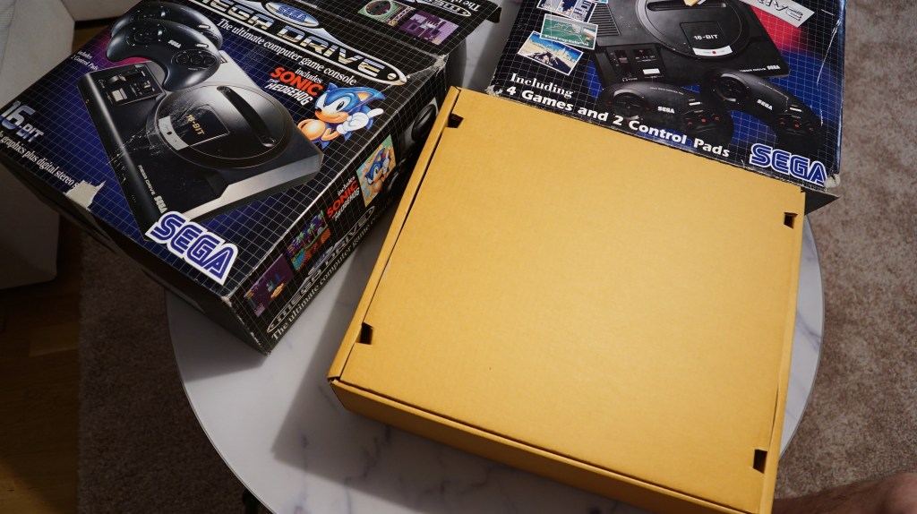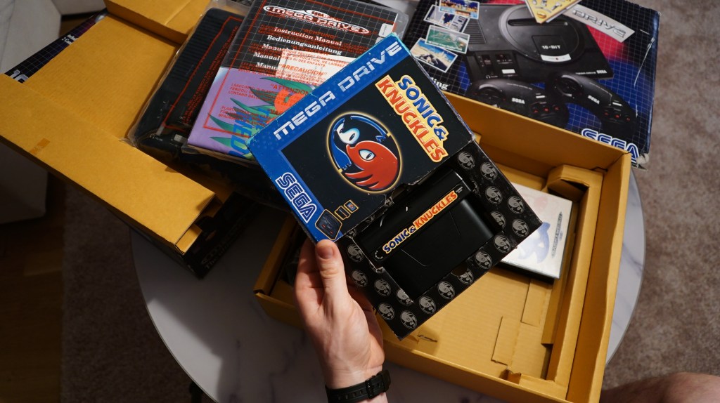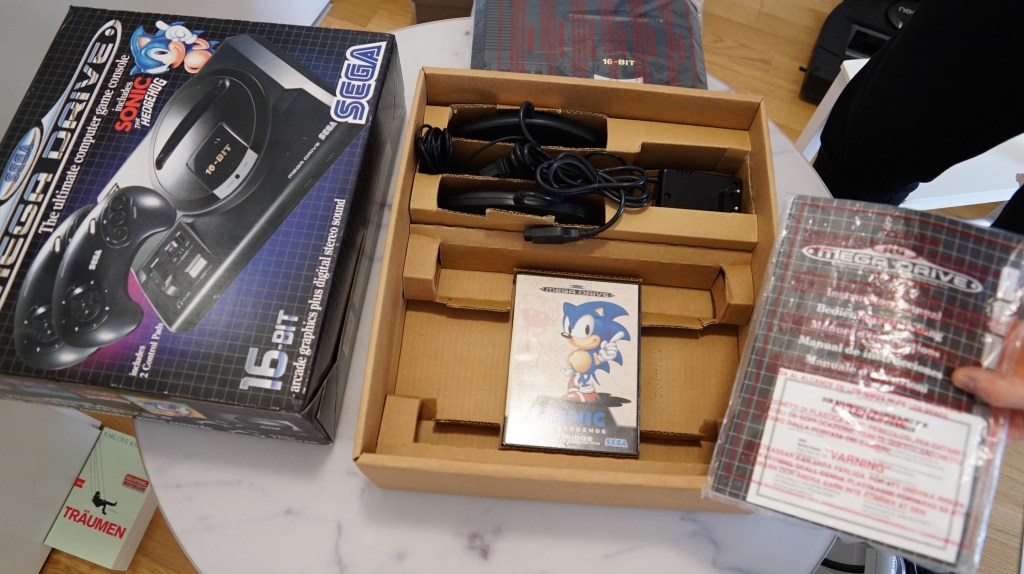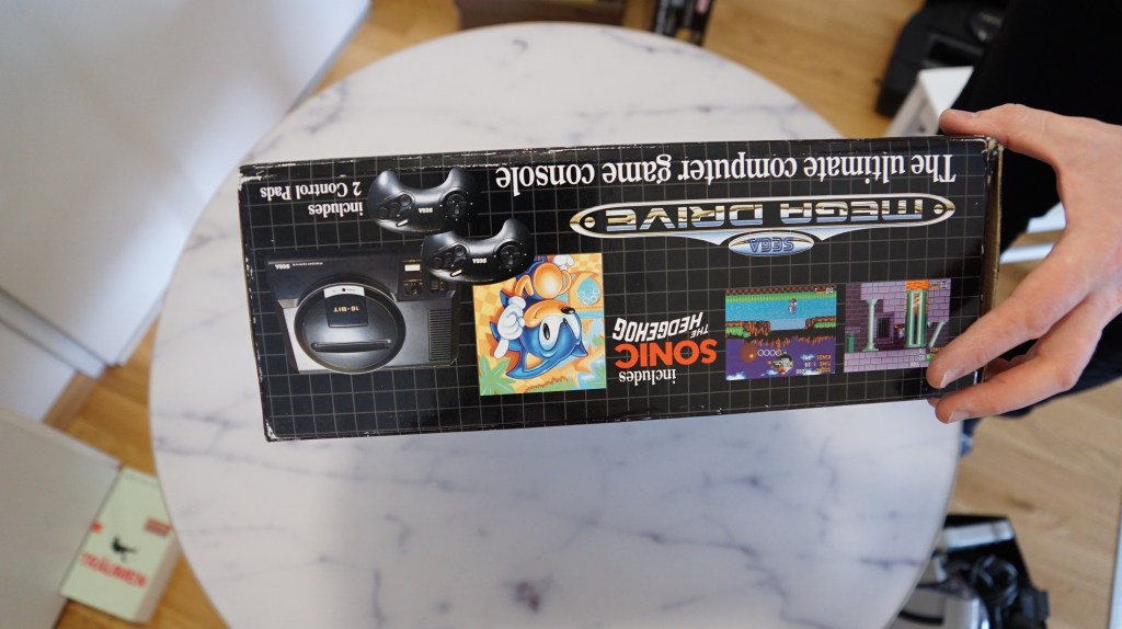 | 102 | SEGA | Sega Mega Drive + Sonic | Mega Drive in doppelter Verpackung, Verpackung sehr mitgenommen, Konsole und Inhalt in gutem Zustand mit Sonic Spiel und Sonic und Knuckels aufsatz | JA | NEIN | 3 | 8 | 200 |