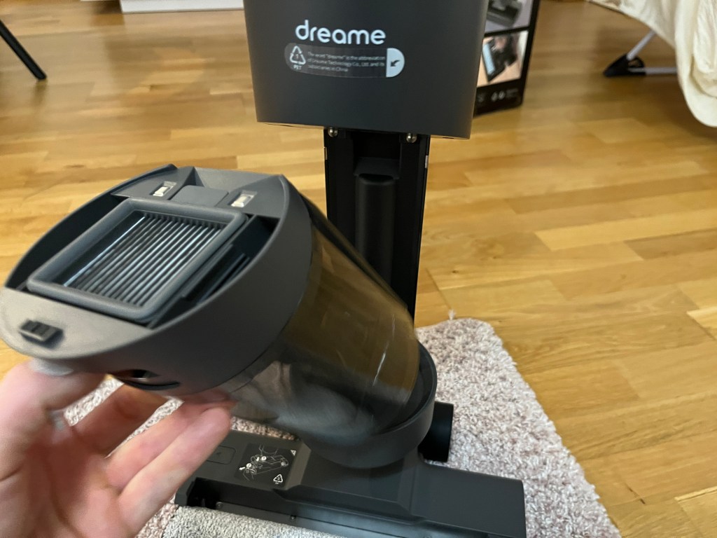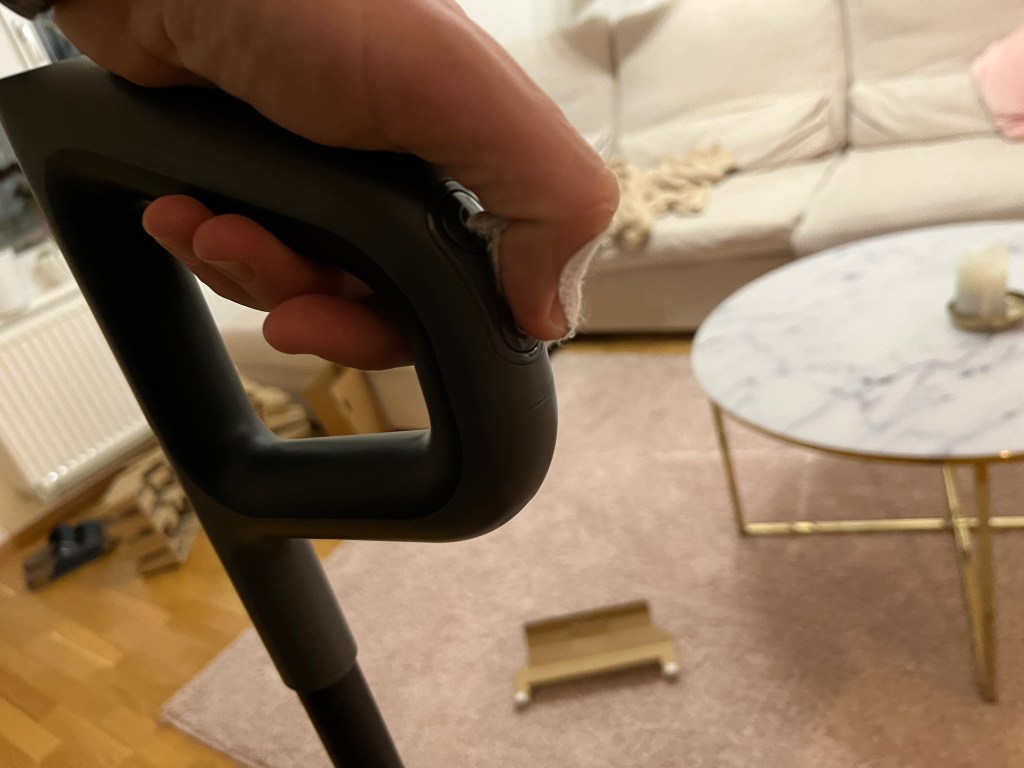 Was mir zu Beginn sofort aufgefallen ist, dass der Staubsauger von selbst steht. Ich kenn das von unserem Staubsauger, hier muss der Saugrüssel in den Staubsauger verstaut werden und steht dadurch nicht immer sicher. Der Staubsauger schaltet sich auch nur dann ein, wenn er eingeschaltet ist und man ihn leicht kippt.