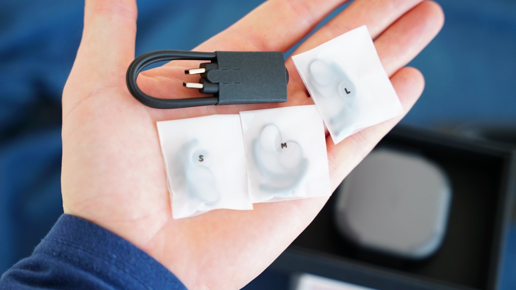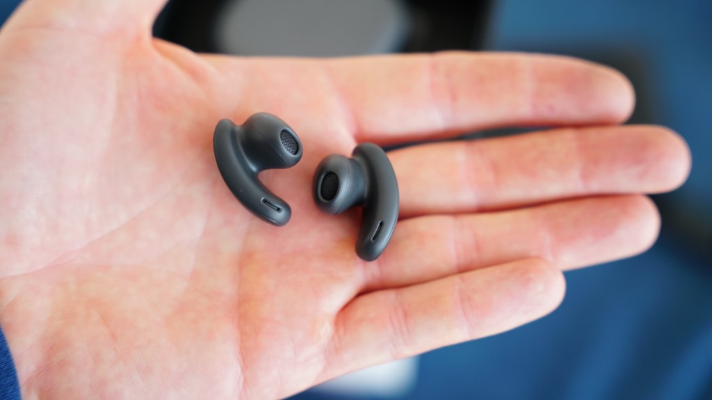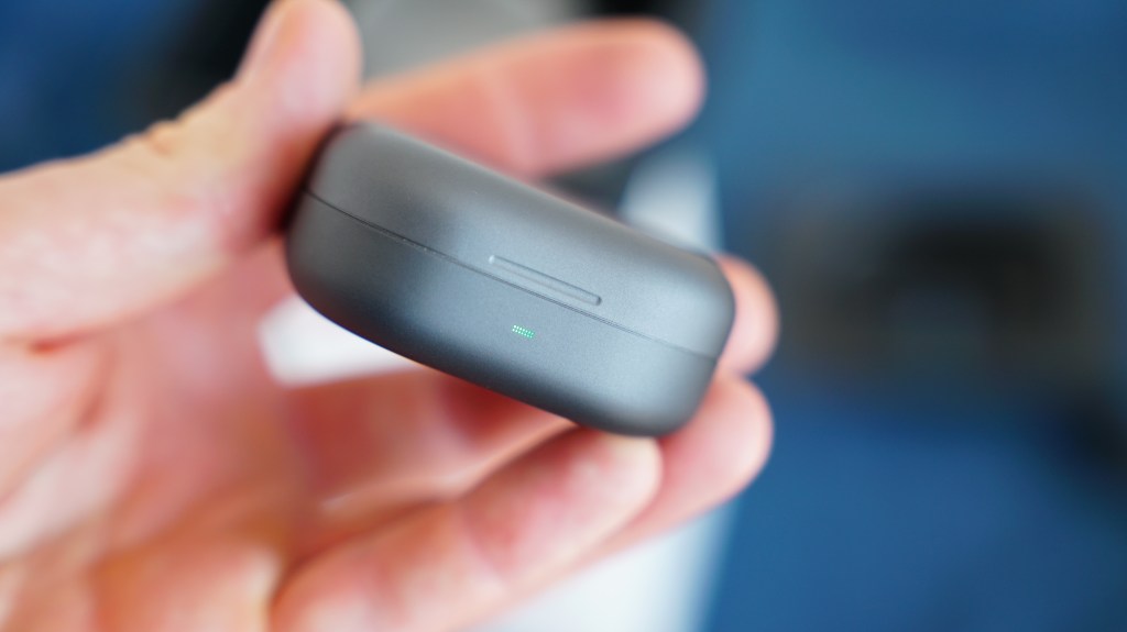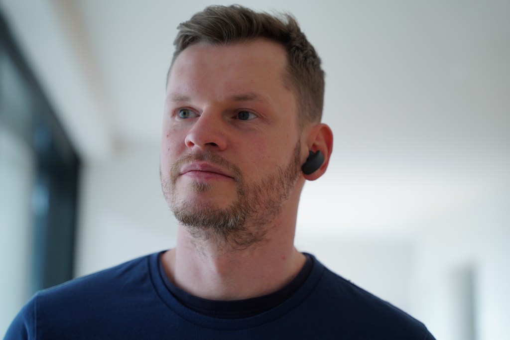 Ansonsten sind die In Ears ein echter Hingucker, das Ladecase hat an der Außenseite eine raue Metalloberfläche die sich kühl und hochwertig anfühlt. Das Ladecase ist vergleichsweise schwer und vermittelt dadurch ein hochwertiges Gefühl. Die In-Ears selbst sehen futuristisch aus und haben ein unkonventionelles Design. Der Ohrstöpsel ist ähnlich wie bei den AirPods, wobei das Hinterteil geschwungen ist und leicht an ein kurzes Headset erinnert.