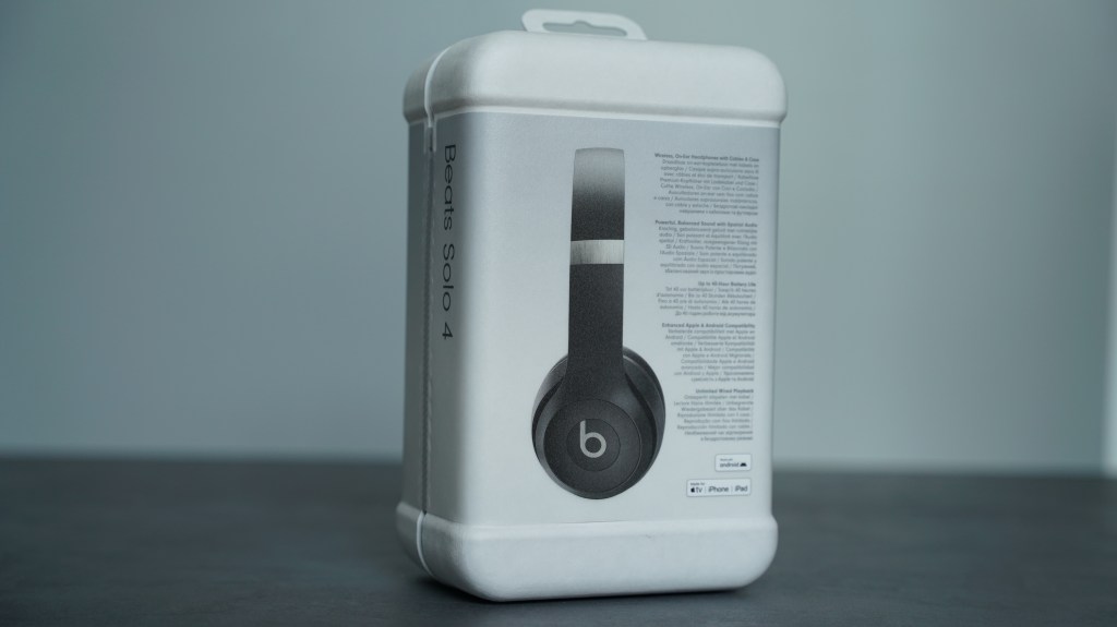 Die Verpackung der Beats Solo 4 ist klein und kompakt, was in Zeiten des Klimawandels positiv zu bewerten ist. Im Inneren findet man neben den Kopfhörern selbst eine Aufbewahrungstasche, ein USB-C-Kabel und ein 3,5-mm-Klinkenkabel.
