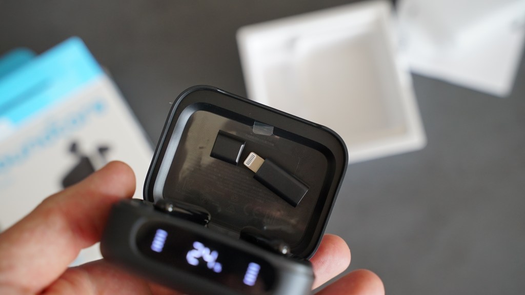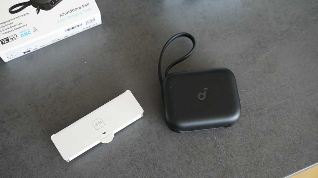Besonderes Schmankerl: Das Case fungiert zusätzlich als Powerbank mit integriertem USB-C-Kabel. Du kannst also nicht nur deine Buds laden, sondern auch dein Smartphone – super praktisch, wenn unterwegs mal wieder der Akkustand rot leuchtet. Ein kleiner Lightning-Adapter ist auch dabei – iPhone-Nutzer bleiben also nicht außen vor.